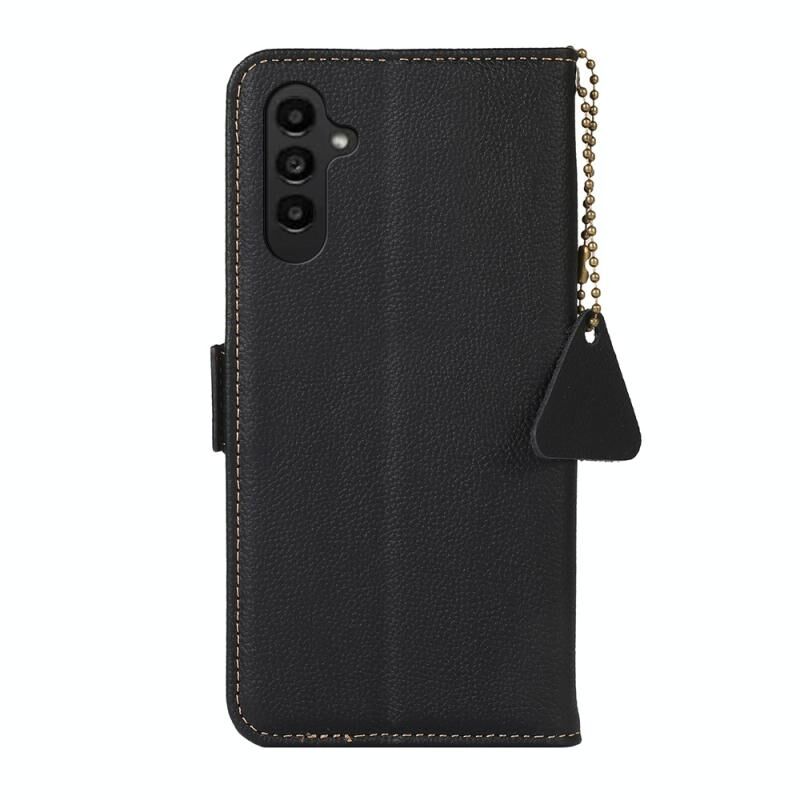 Θήκη τηλεφώνου Samsung Galaxy A26 5G με μαγνητικό κλείσιμο στο πλάι, από γνήσιο δέρμα TJ, με προστασία RFID (Μαύρο)