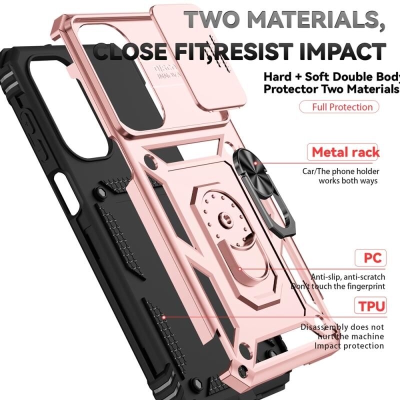 Για Samsung Galaxy A26 5G Συρόμενη θήκη τηλεφώνου με κάλυμμα κάμερας (Ροζ χρυσός)