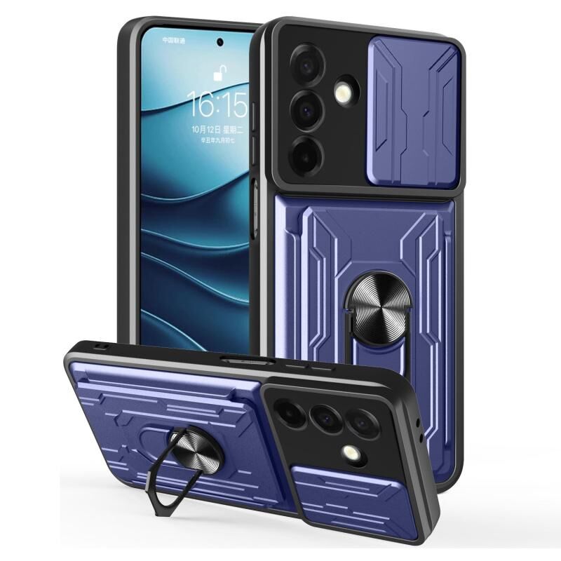Θήκη κινητού τηλεφώνου Samsung Galaxy A26 5G με συρόμενο προστατευτικό κάμερας Camshield, κατασκευασμένη από TPU+PC με υποδοχή κάρτας (Μπλε)