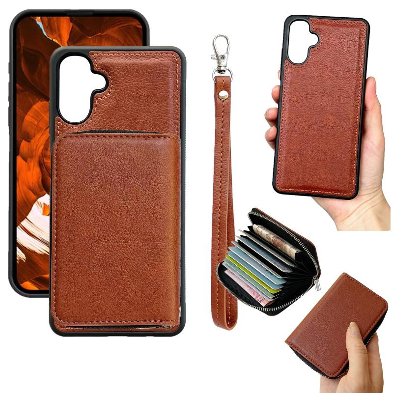 For Samsung Galaxy A26 5G Solid Color Zipper 11-Card Slots Bag Phone Case with Lanyard(Brown)