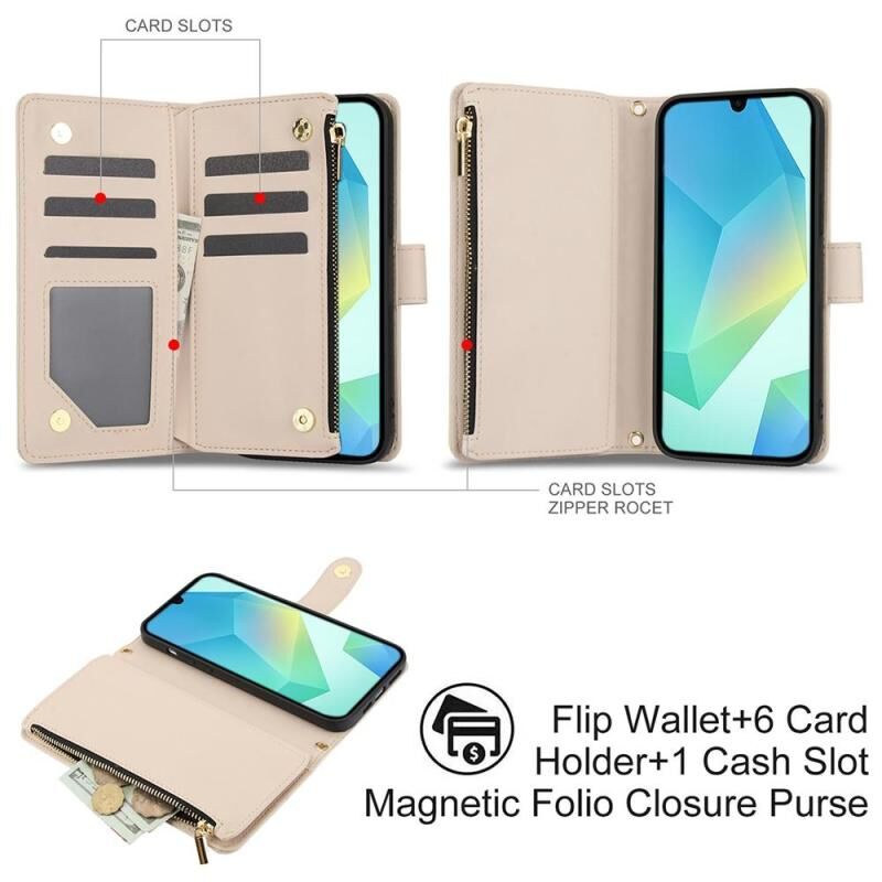 5. Λειτουργία πολλαπλών καρτών και πορτοφολιού: πολλαπλές υποδοχές καρτών και τσέπες πορτοφολιού με φερμουάρ, διαμερίσματα για μετρητά μπορούν να αποθηκεύσουν τις πιστωτικές σας κάρτες και τα καθημερινά μικρά χαρτονομίσματα.
