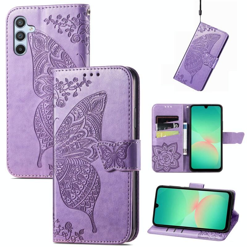 For Samsung Galaxy A26 Butterfly Love Flower Embossed Leather Phone Case(Lavender)