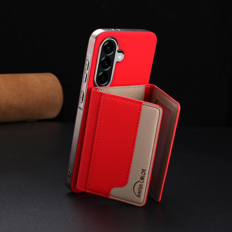 For Samsung Galaxy A26 Colour Matching Horizontal Magnetic Card Bag RFID MagSafe Phone Case(Red)