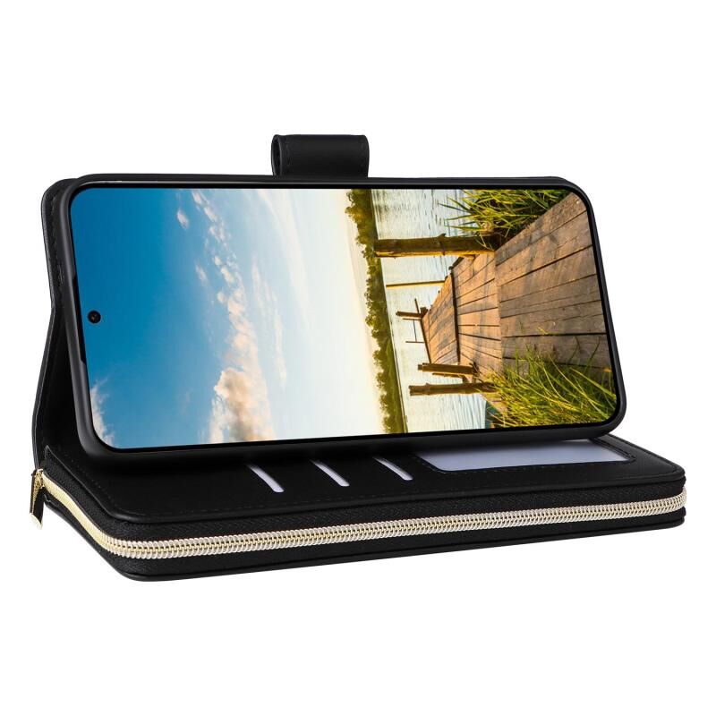 Για Samsung Galaxy A26 εννέα-κάρτα Slots φερμουάρ πορτοφόλι τσάντα δέρμα τηλέφωνο υπόθεση (μαύρο)