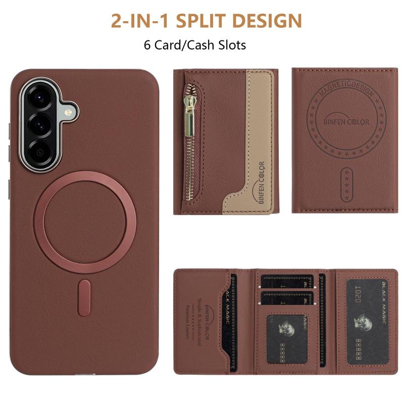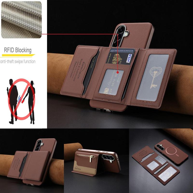 Για Samsung Galaxy A26 Θήκη με Μαγνητικό Κλείσιμο & Κάρτες RFID MagSafe (Καφέ)