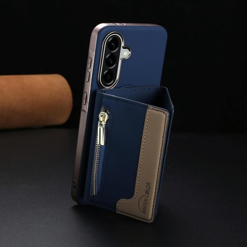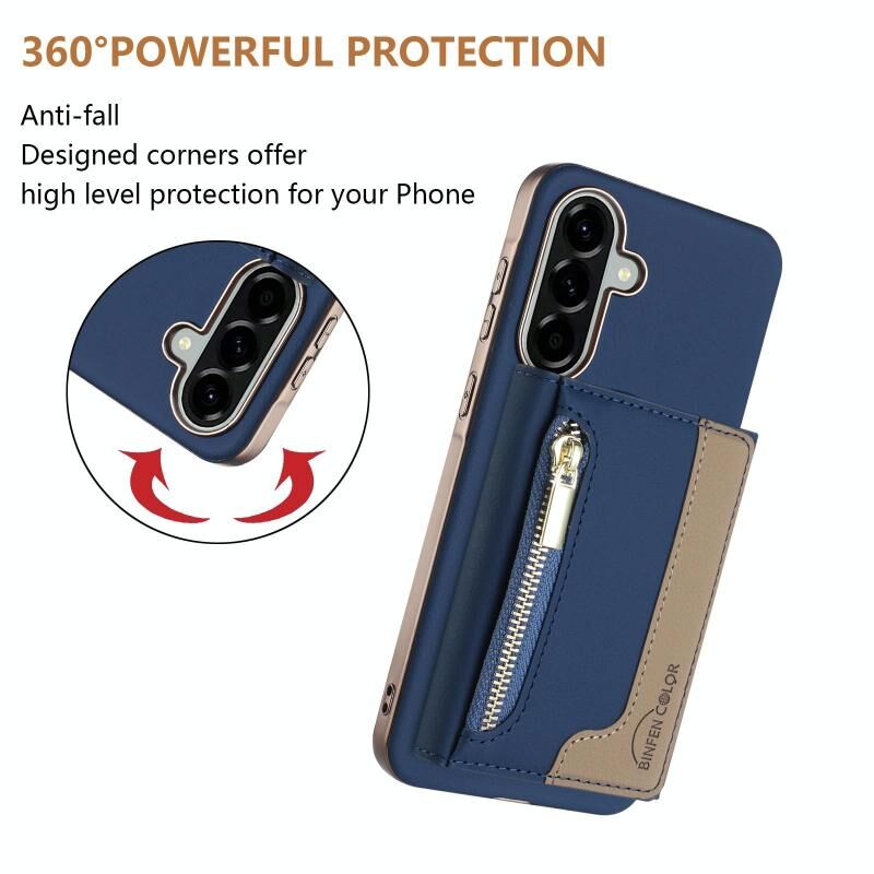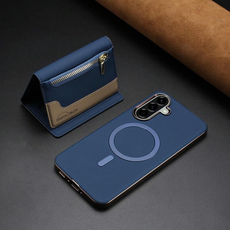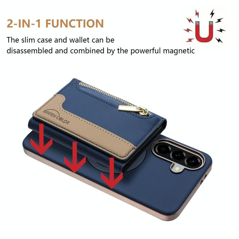 For Samsung Galaxy A26 Zipper Horizontal Magnetic Card Bag RFID MagSafe Phone Case(Dark Blue)