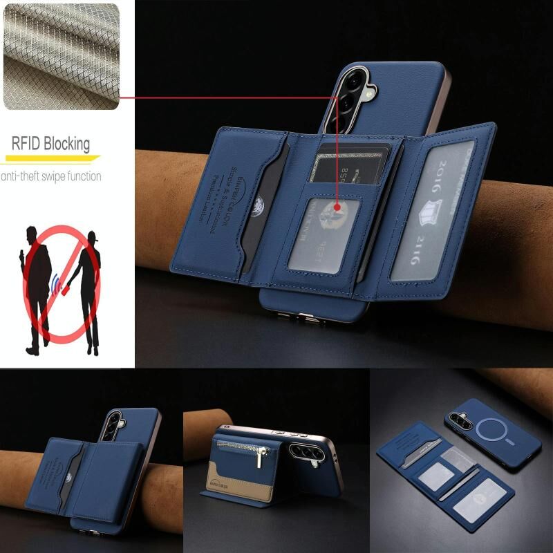2. Magnetic Tri-Fold Wallet Design: Features a horizontal fold with a strong magnetic closure for easy access and secure storage.