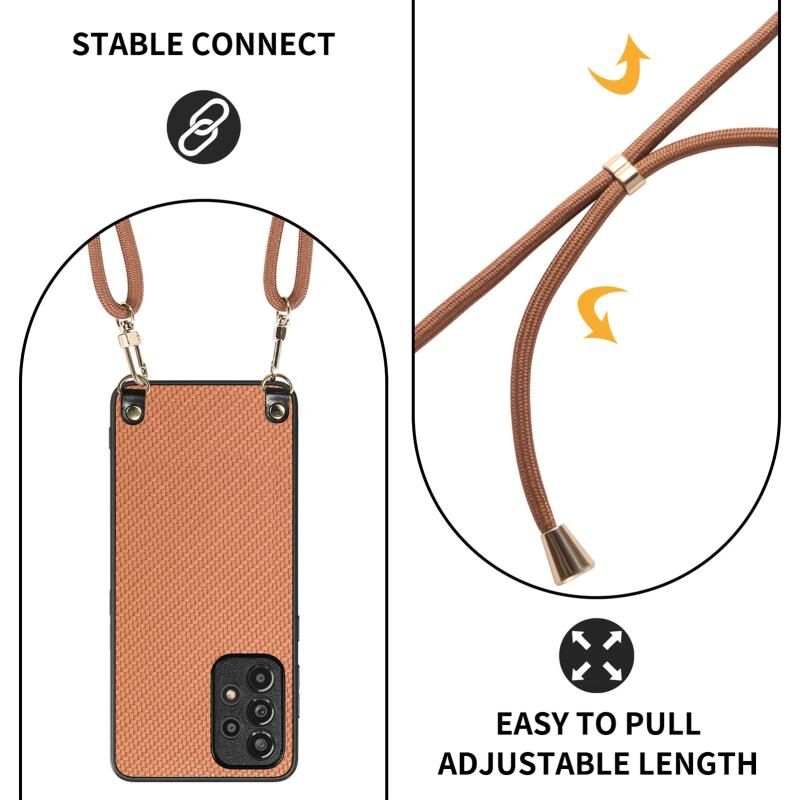 Για Samsung Galaxy A30 / A20 Carbon Fiber Texture δέρμα πίσω κάλυμμα τηλέφωνο υπόθεση με λουράκι για το σώμα (Καφέ)