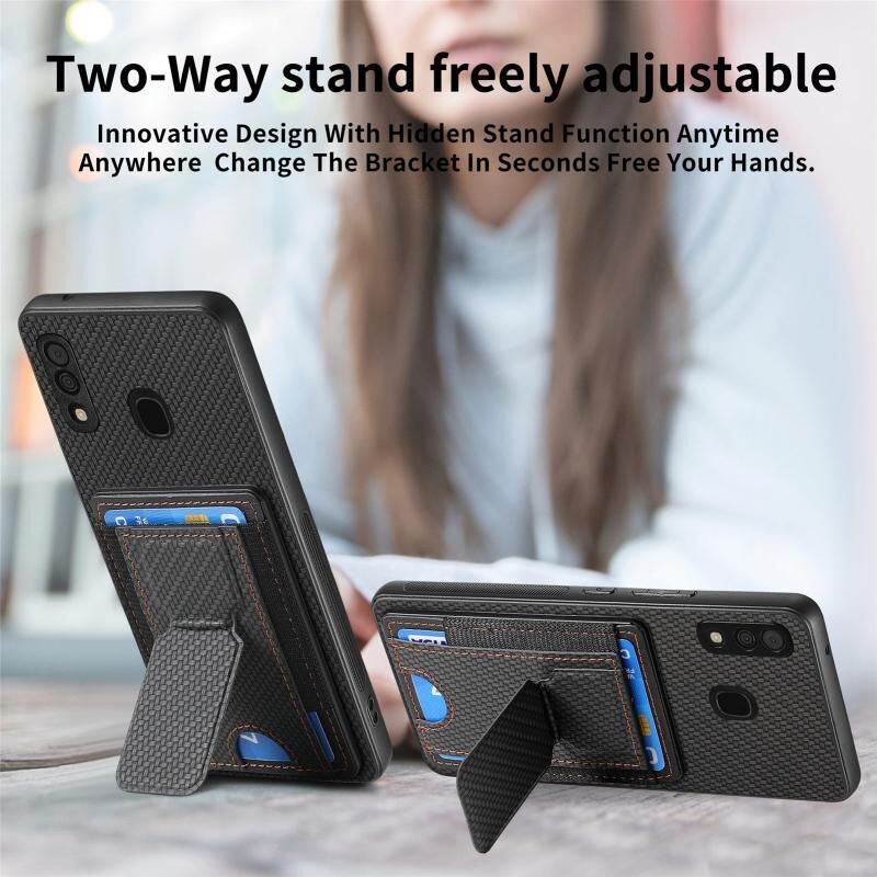 For Samsung Galaxy A30/A20/M10s Carbon Fiber Fold Stand Elastic Card Bag Phone Case(Black)