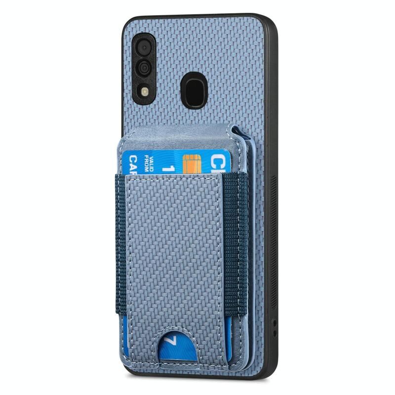 Για Samsung Galaxy A30 / A20 / M10s Carbon Fiber Κάθετη Flip Wallet Stand υπόθεση τηλεφώνου (Μπλε)