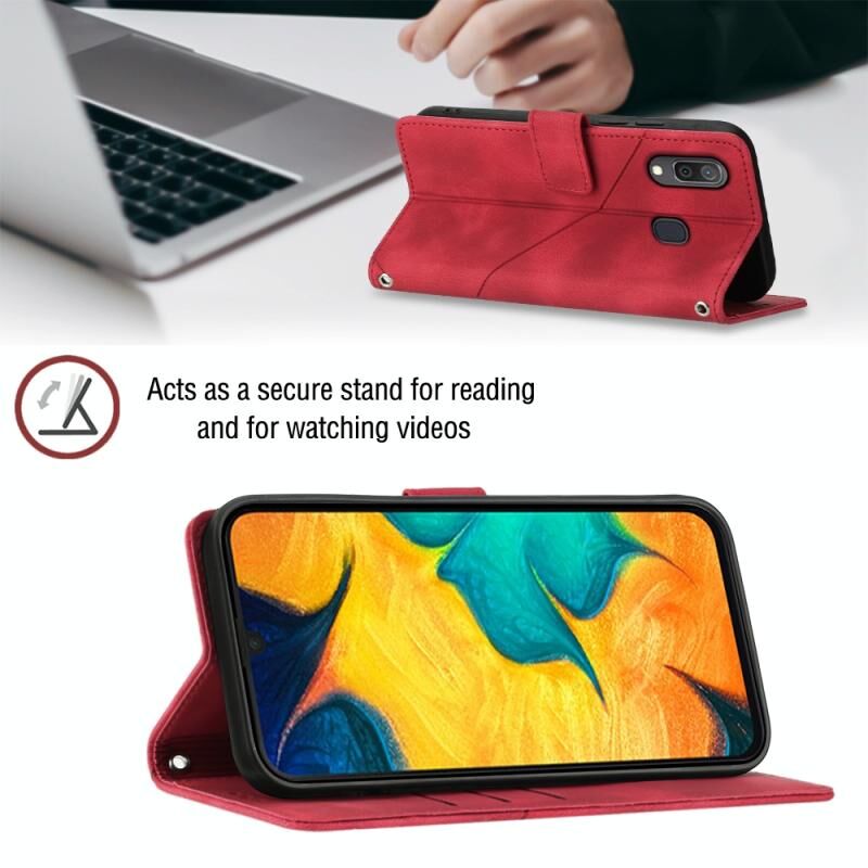 Για Samsung Galaxy A30 / A20 / M10s Skin-feel ανάγλυφη δερμάτινη θήκη τηλεφώνου (Κόκκινο)
