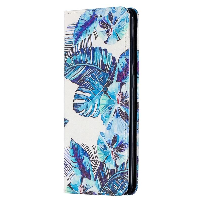 Θήκη Samsung Galaxy A30, πολύχρωμη με σχέδιο, αόρατη μαγνητική οριζόντια από δερματίνη PU με βάση & θήκες για κάρτες & πορτοφόλι (Μπλε Φύλλο)