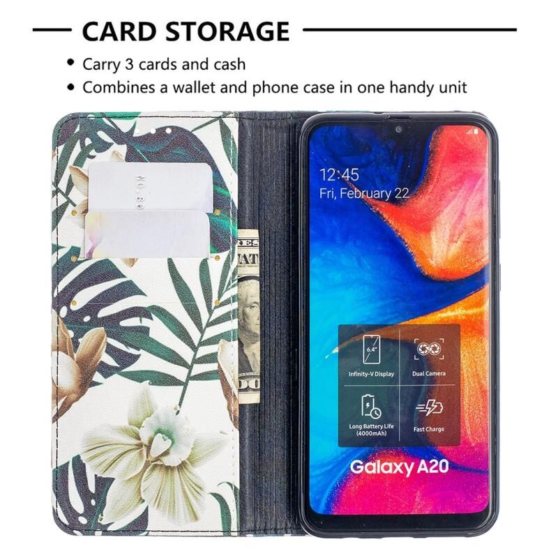 Θήκη Samsung Galaxy A30, πολύχρωμη με σχέδιο, αόρατη μαγνητική οριζόντια από δερματίνη PU με βάση & θήκες για κάρτες & πορτοφόλι (Μπλε Φύλλο)
