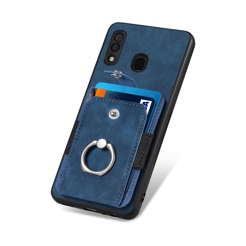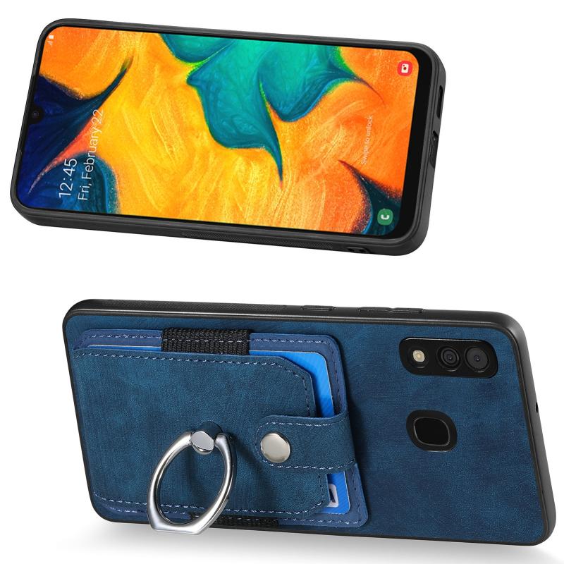 Θήκη κινητού τηλεφώνου Samsung Galaxy A30 με κάρτες και δακτύλιο, με ρετρό υφή (Καφέ)