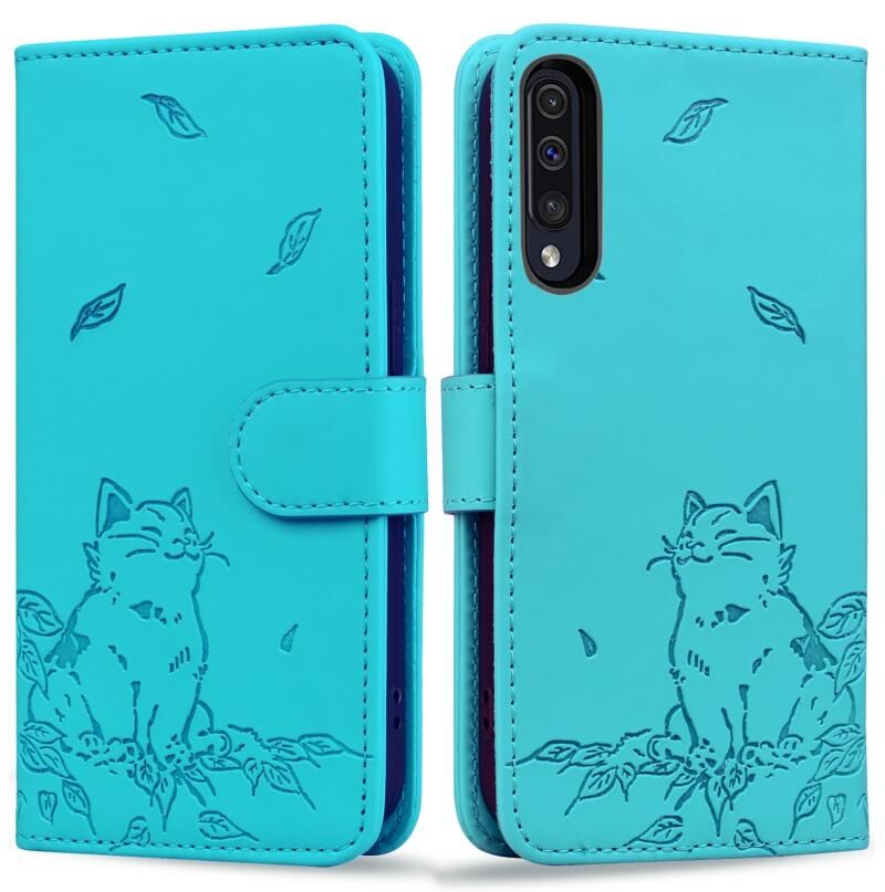 Θήκη τηλεφώνου από δέρμα με ανάγλυφο σχέδιο χαριτωμένης γάτας για Samsung Galaxy A30s / A50 (Πράσινο)