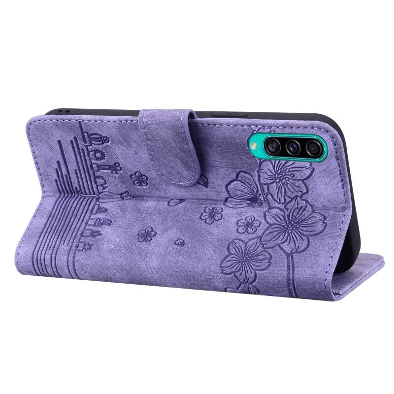 Θήκη τηλεφώνου από δέρμα με ανάγλυφο σχέδιο καρτούν Sakura Cat για Samsung Galaxy A30s / A50s / A50 (Βασιλικό Μπλε)