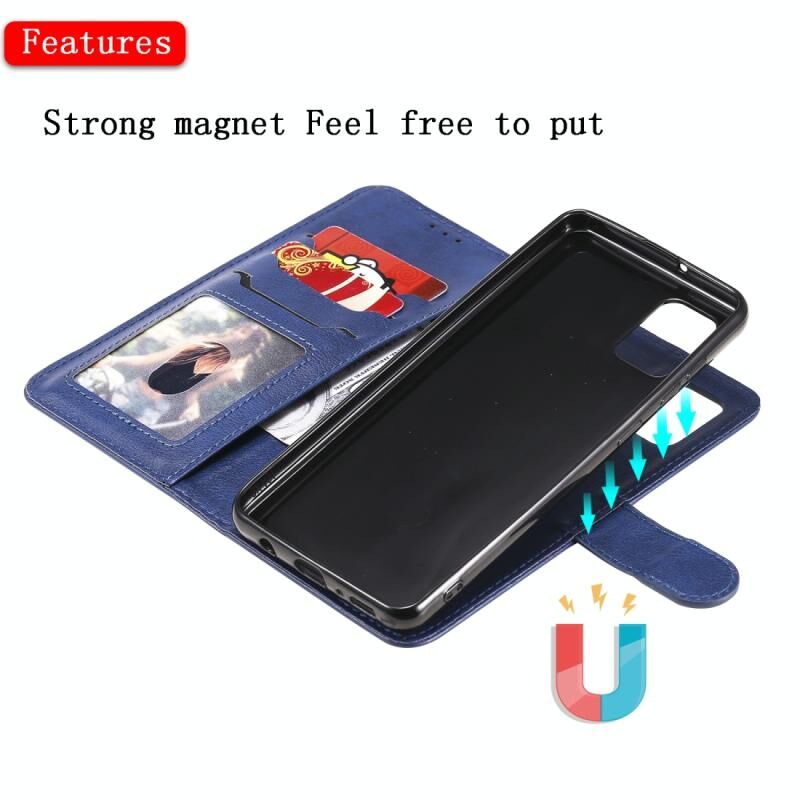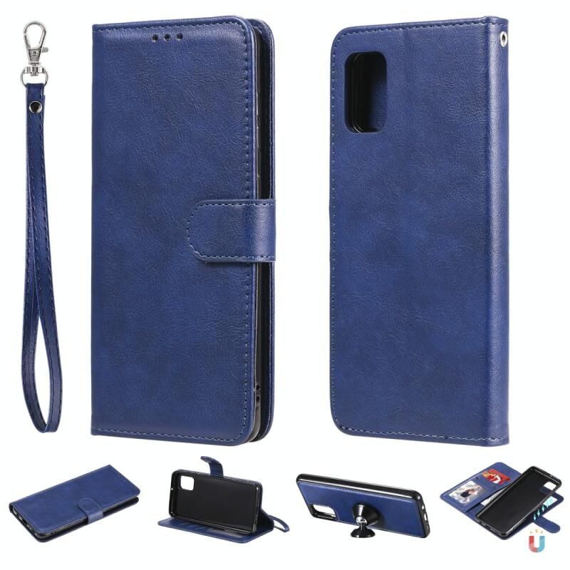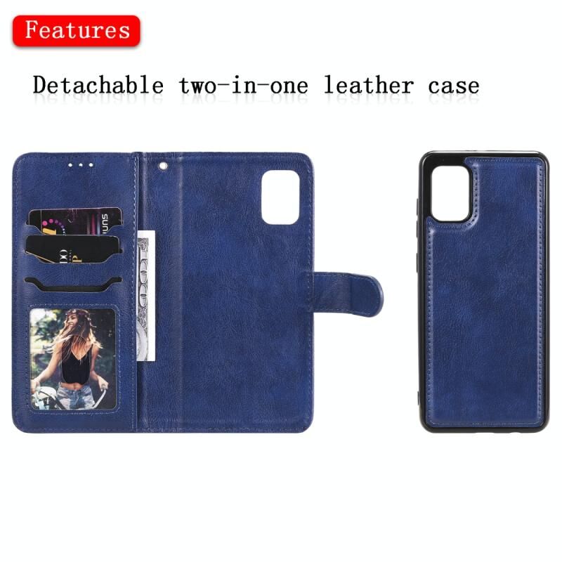 Για Samsung Galaxy A31 2 σε 1 Στερεόχρωμη Αποσπώμενη Θήκη από Δερματίνη PU με Θήκες Καρτών & Μαγνητική Βάση & Κορνίζα Φωτογραφιών & Πορτοφόλι & Λουρί (Μπλε)