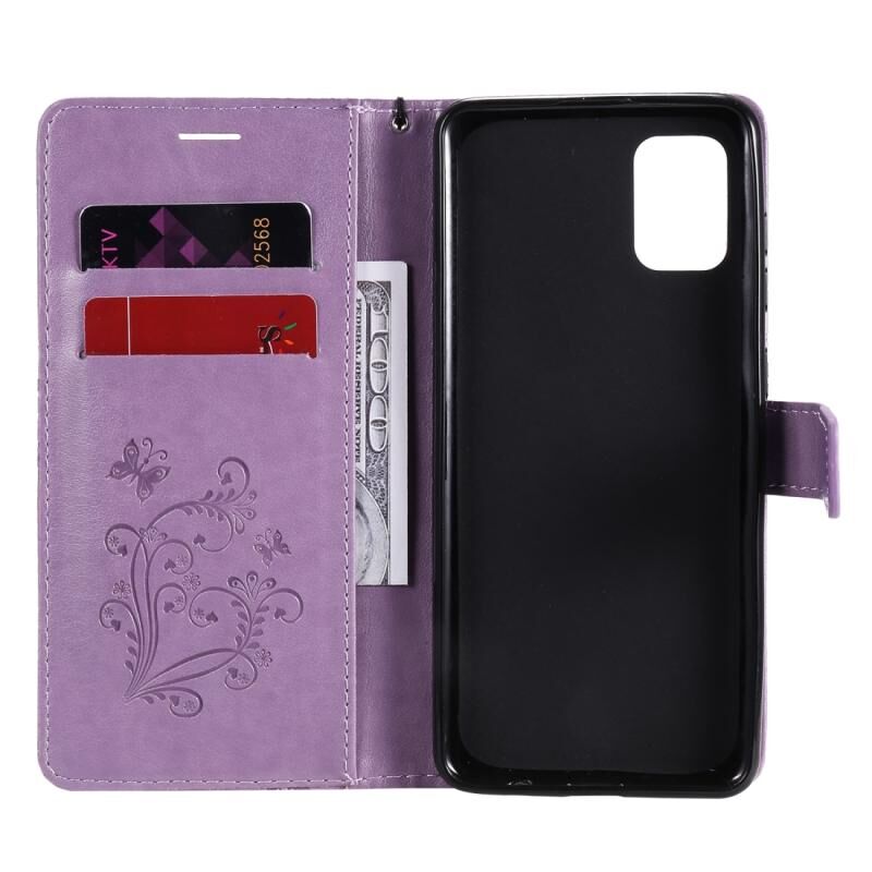 Θήκη Samsung Galaxy A31 3D Πεταλούδες, Δερμάτινη Οριζόντια με Αναγλυφή, με Θήκη & Υποδοχή Κάρτας & Πορτοφόλι (Μωβ)