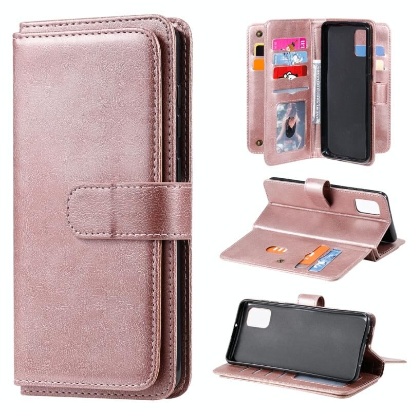 Θήκη Samsung Galaxy A31 / A315 Πολυλειτουργική Μαγνητική Θήκη με Αγκράφα από Χαλκό, Οριζόντια, Μονόχρωμη Δερμάτινη με 10 Θήκες Καρτών & Πορτοφόλι & Στήριξη & Κορνίζα Φωτογραφιών (Ροζ χρυσός)