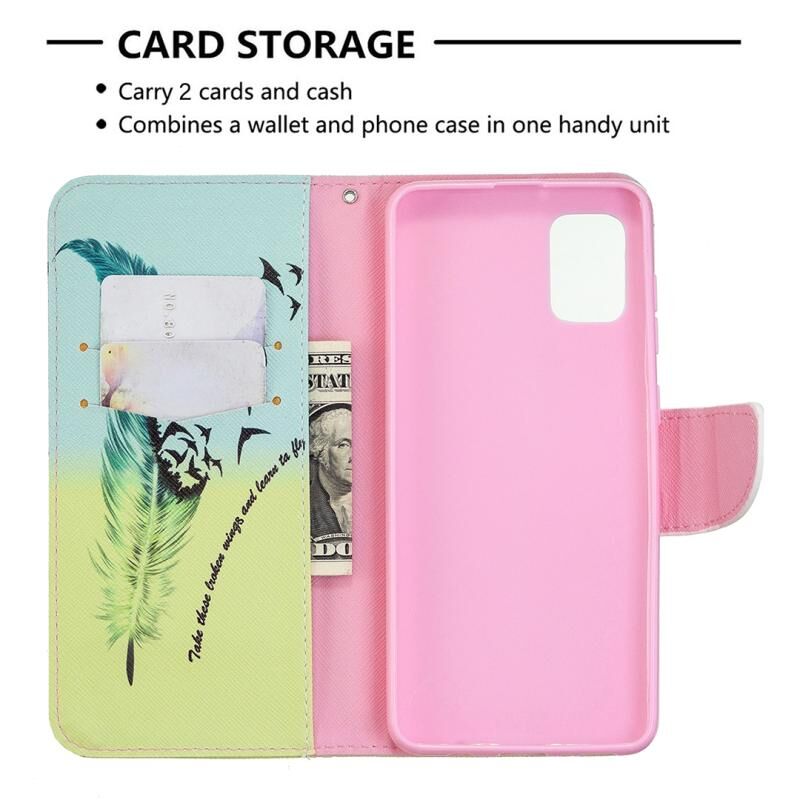 Θήκη δέρματος οριζόντιας αναδίπλωσης με σχέδιο πολύχρωμης ζωγραφικής για Samsung Galaxy A31 με βάση & υποδοχές καρτών & πορτοφόλι (Φτερό)