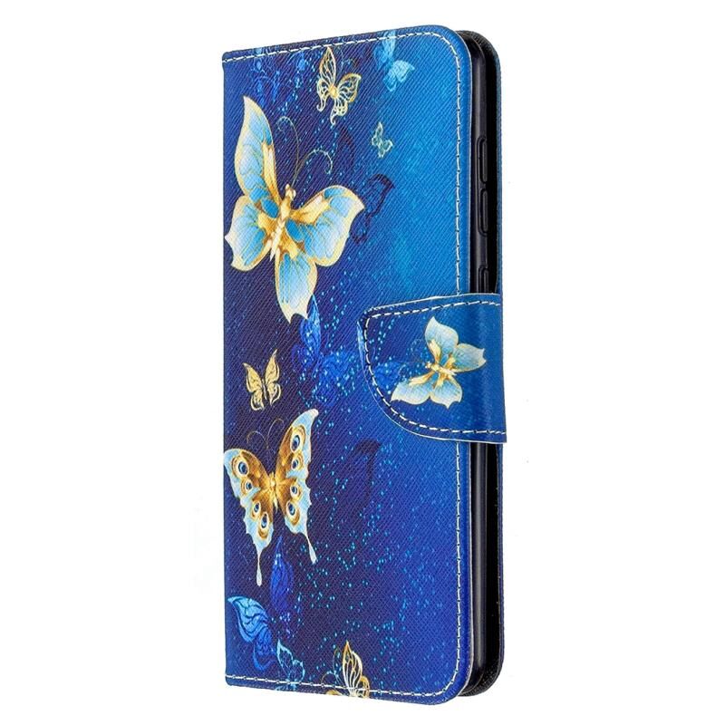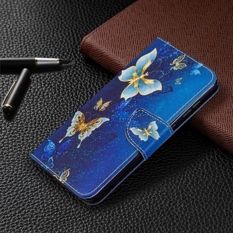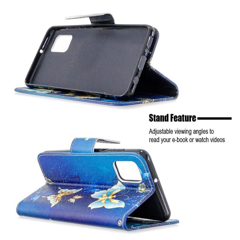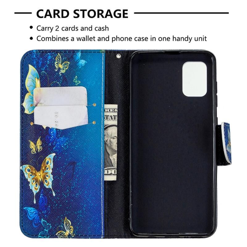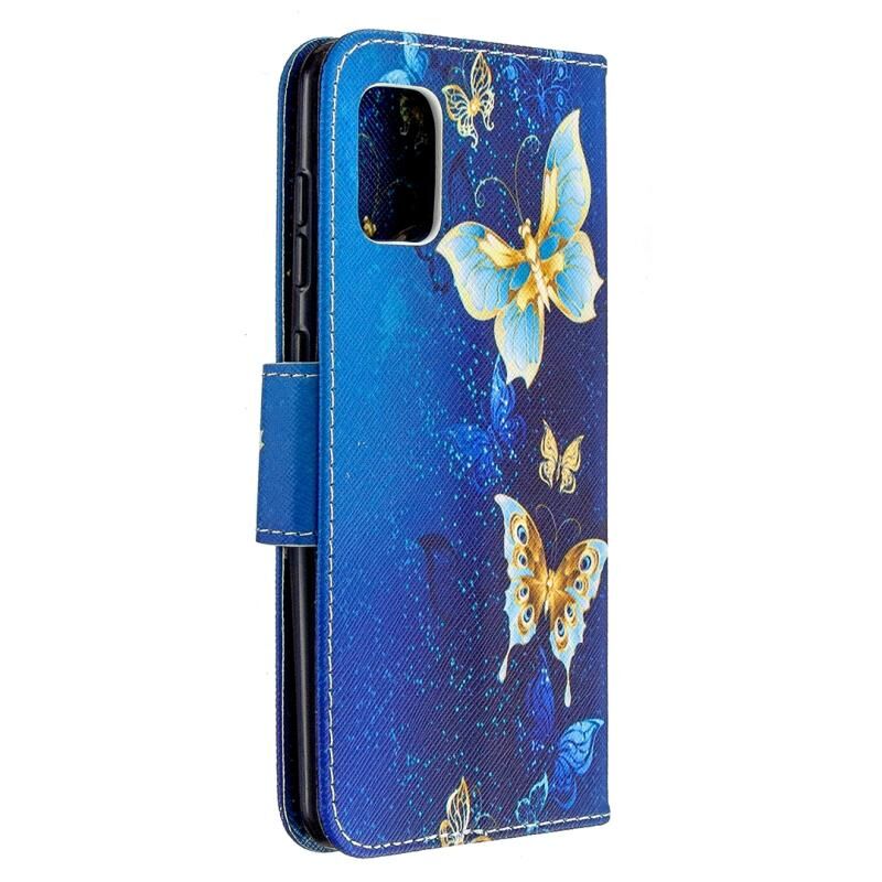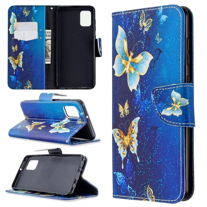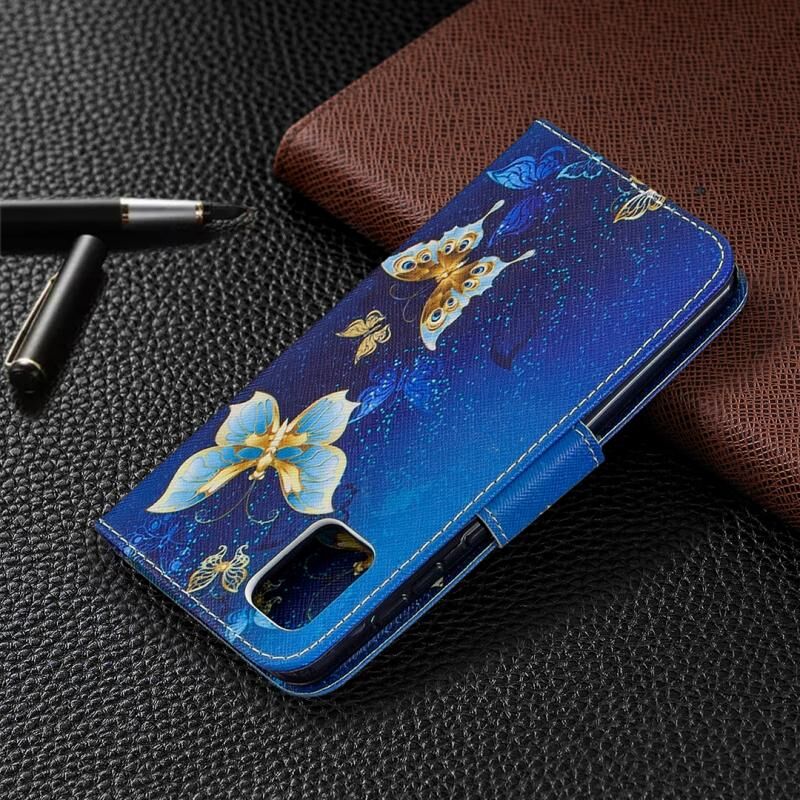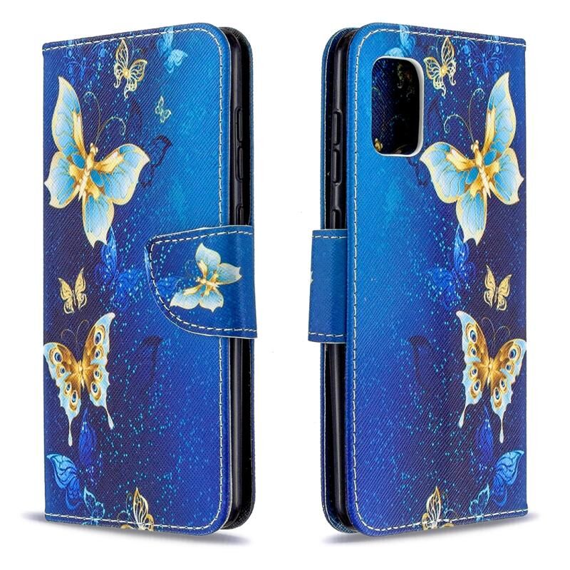 Θήκη Samsung Galaxy A31 Δερμάτινη Οριζόντια με σχέδιο πολύχρωμης ζωγραφικής, με βάση & θήκες καρτών & πορτοφόλι (Χρυσή Πεταλούδα)