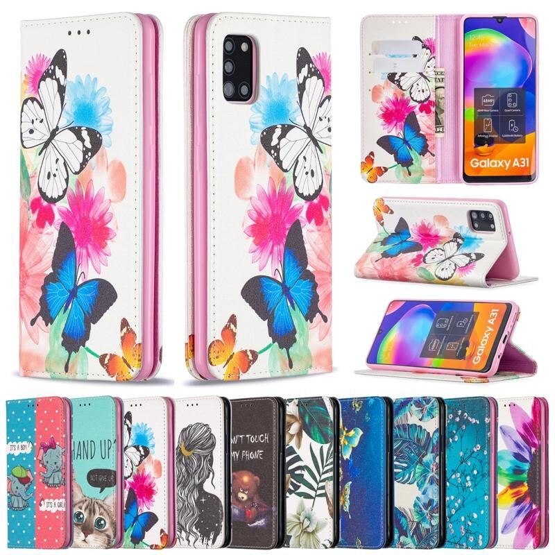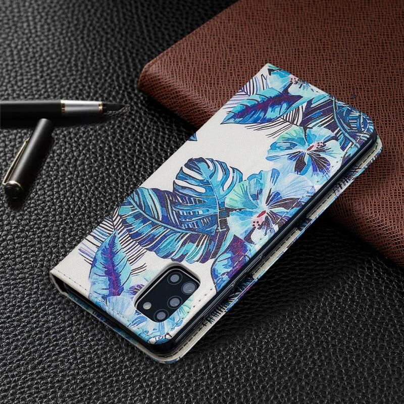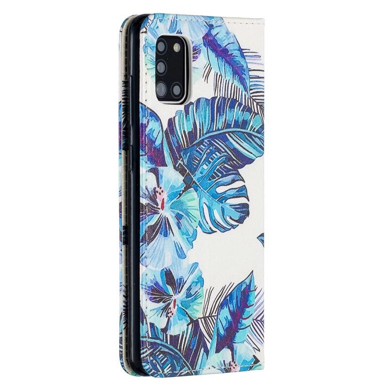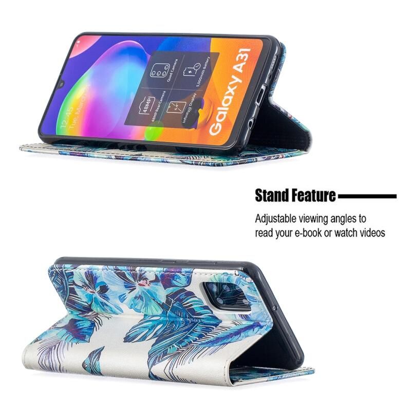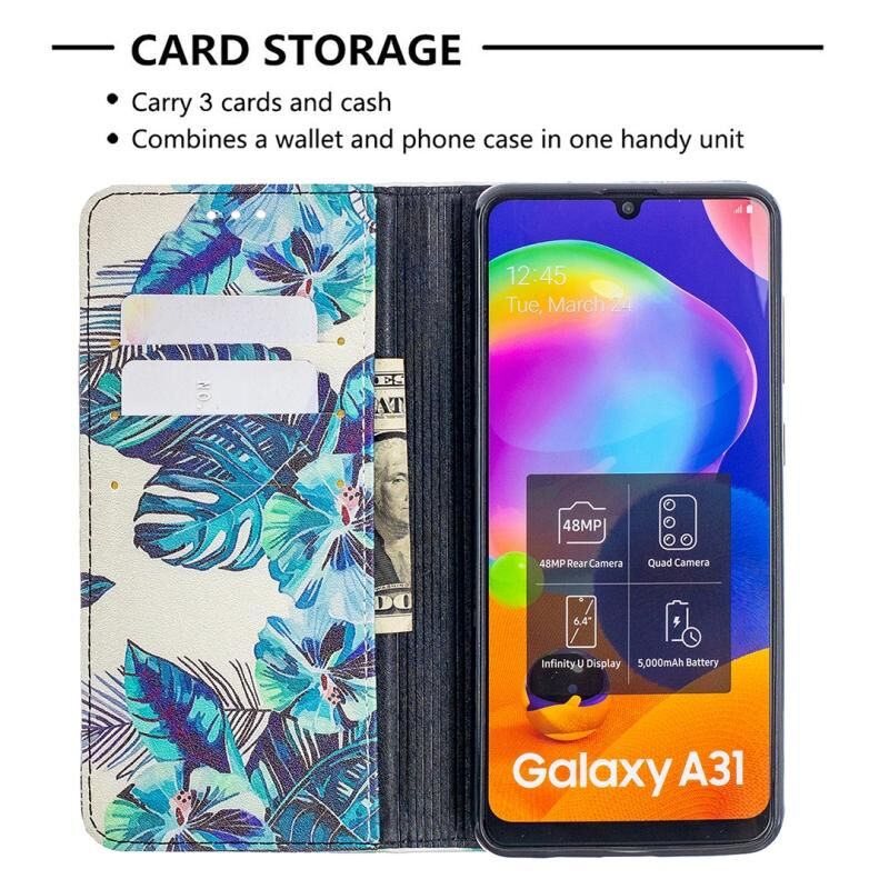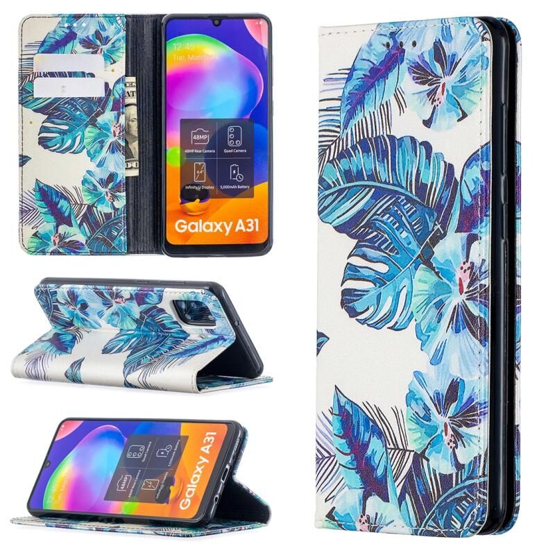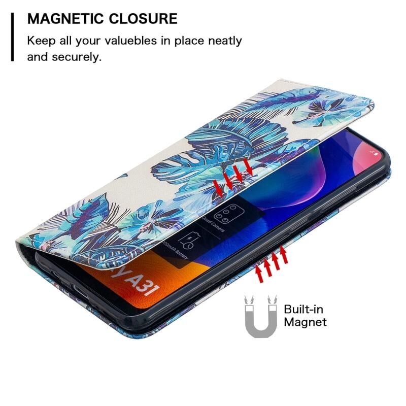 Θήκη Samsung Galaxy A31, πολύχρωμη με σχέδιο, αόρατη μαγνητική οριζόντια από δερματίνη PU με βάση & θήκες για κάρτες & πορτοφόλι (Μπλε Φύλλο)