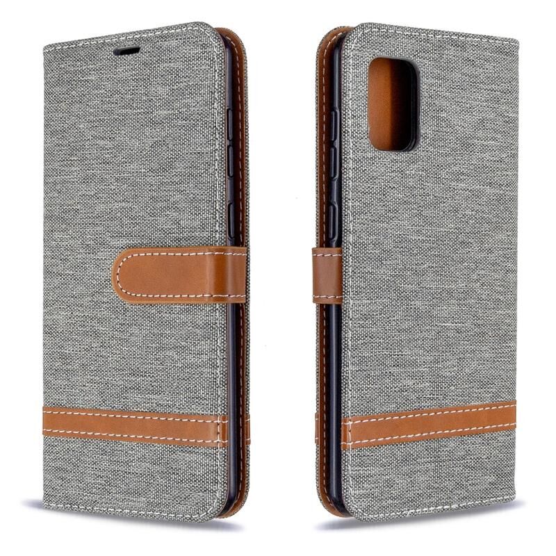 Για Samsung Galaxy A31 Denim υφή οριζόντια Flip δερμάτινη θήκη με θήκη & υποδοχές για κάρτες & πορτοφόλι & κορδόνι (γκρι)