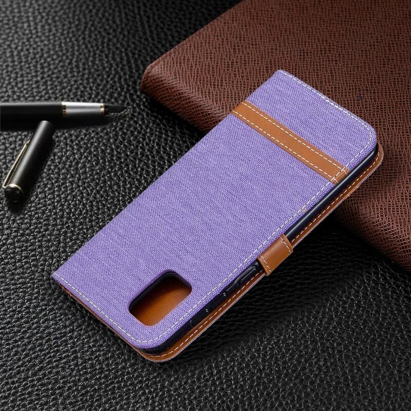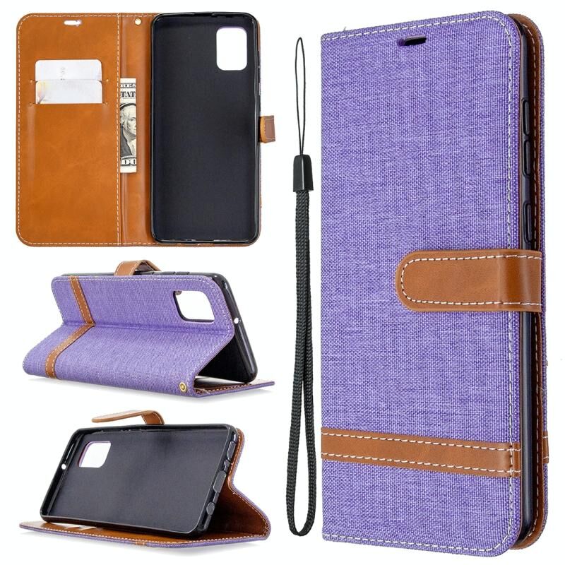 Για Samsung Galaxy A31 Denim υφή οριζόντια Flip δερμάτινη θήκη με θήκη & υποδοχές για κάρτες & πορτοφόλι & κορδόνι (μωβ)
