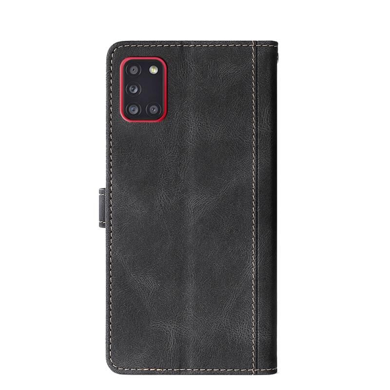 Για Samsung Galaxy A31 (έκδοση ΕΕ) Stitching δέρμα αίσθηση μαγνητική πόρπη οριζόντια Flip PU δέρμα υπόθεση με κάτοχο & υποδοχές για κάρτες & πορτοφόλι (Μαύρο)