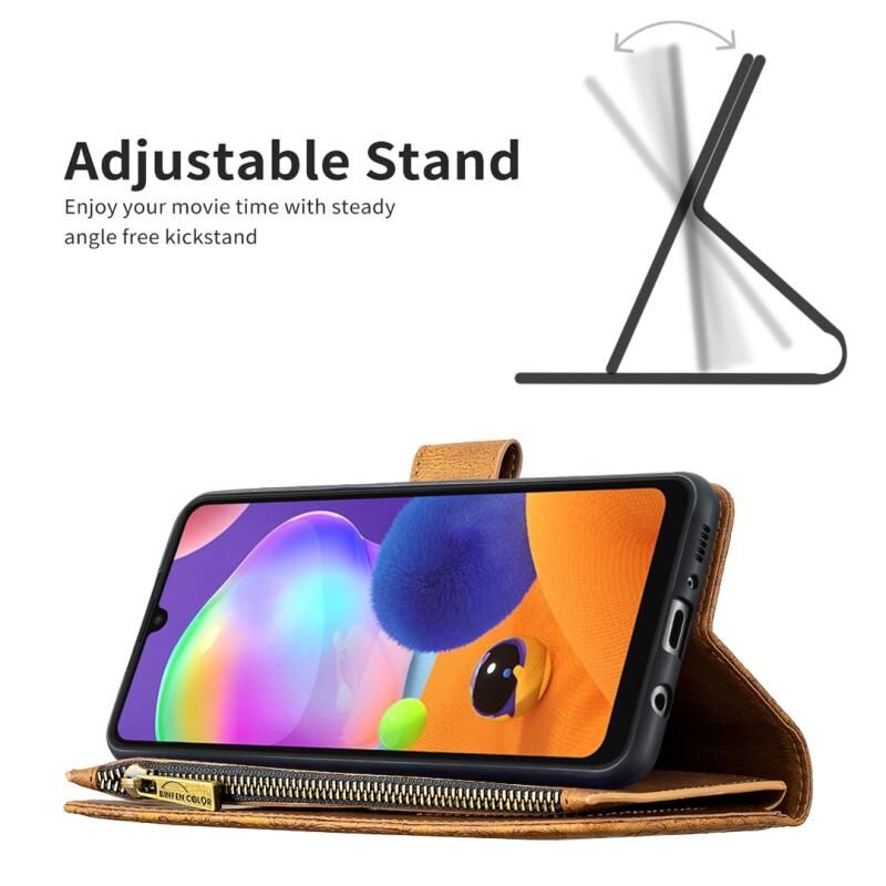 Για Samsung Galaxy A31 Flying πεταλούδα ανάγλυφο μοτίβο φερμουάρ οριζόντια Flip δερμάτινη θήκη με κάτοχο & υποδοχές για κάρτες & πορτοφόλι (καφέ)