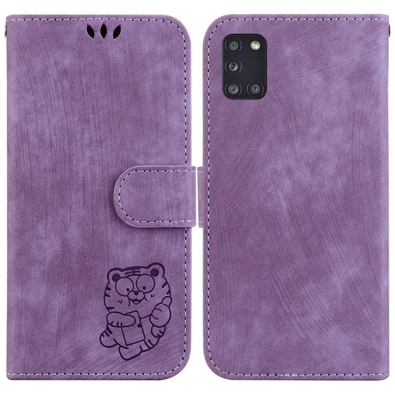 For Samsung Galaxy A31 Little Tiger Embossed Leather Phone Case(Purple)