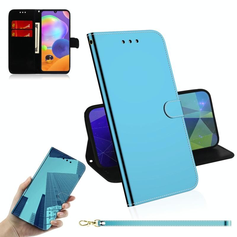 Για Samsung Galaxy A31 Lmitated Mirror Surface Horizontal Flip Leather Case με θήκη για κάρτες & υποδοχές & πορτοφόλι & κορδόνι (μπλε)