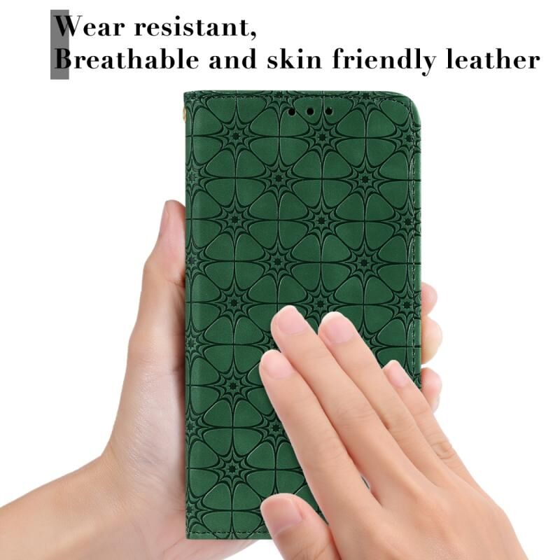 Θήκη Samsung Galaxy A31 με μαγνητικό κλείσιμο, δερμάτινη, οριζόντια, με ανάγλυφο σχέδιο λουλουδιών, βάση στήριξης & θήκες για κάρτες (Σκούρο Πράσινο)