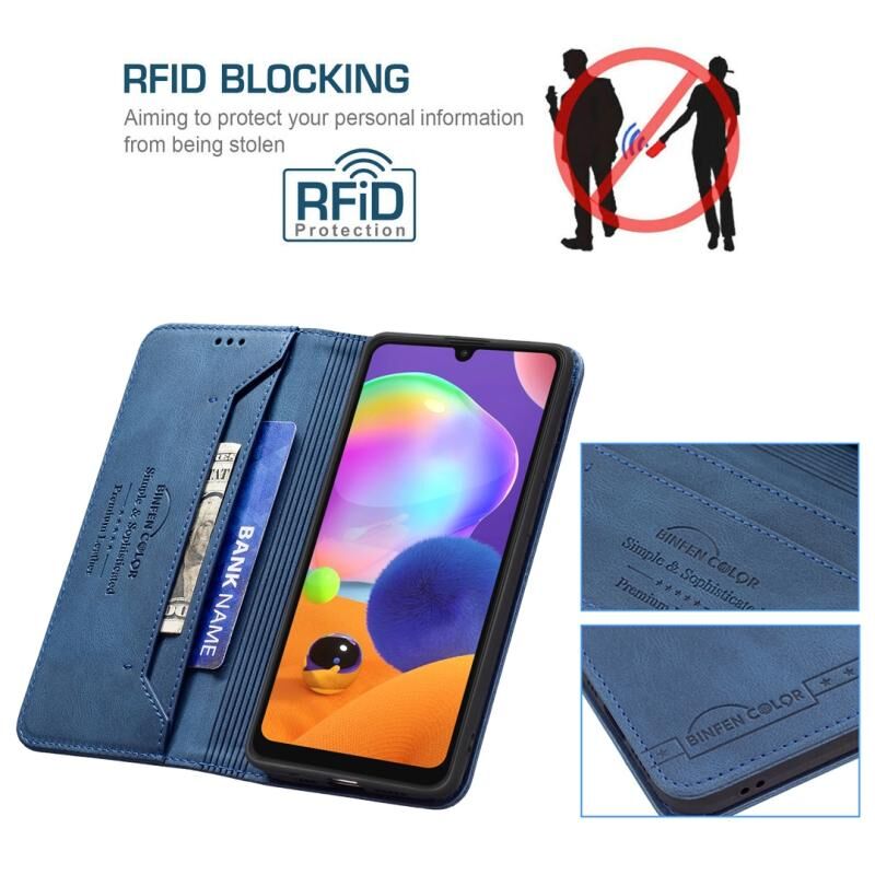 Για Samsung Galaxy A31 Μαγνητικό μπλοκάρισμα RFID Anti-Theft Δερμάτινη θήκη με θήκη & υποδοχές για κάρτες & πορτοφόλι (μπλε)