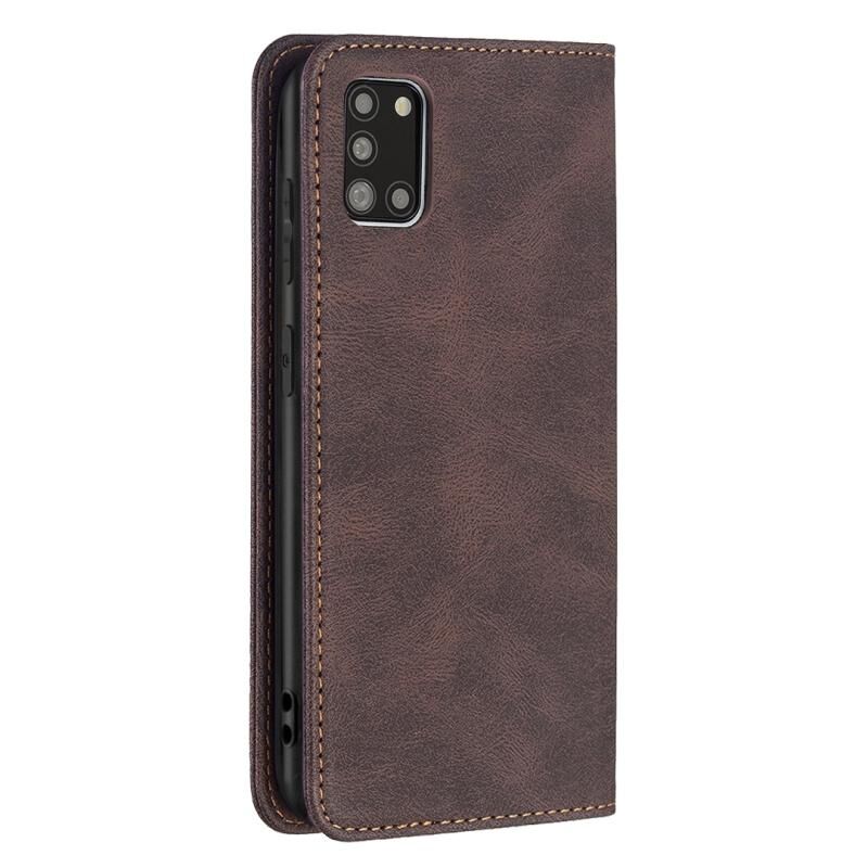 Για Samsung Galaxy A31 Μαγνητικό μπλοκάρισμα RFID Anti-Theft Δερμάτινη θήκη με θήκη & υποδοχές για κάρτες & πορτοφόλι (καφέ)