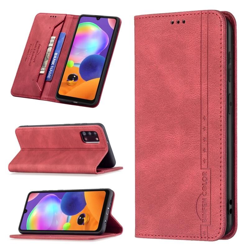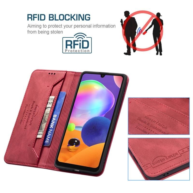 Για Samsung Galaxy A31 Μαγνητικό μπλοκάρισμα RFID Anti-Theft Δερμάτινη θήκη με θήκη & υποδοχές για κάρτες & πορτοφόλι (κόκκινο)