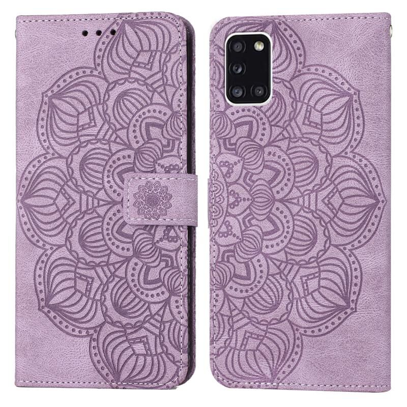Για Samsung Galaxy A31 Mandala ανάγλυφο Flip υπόθεση τηλεφώνου δέρμα (μωβ)