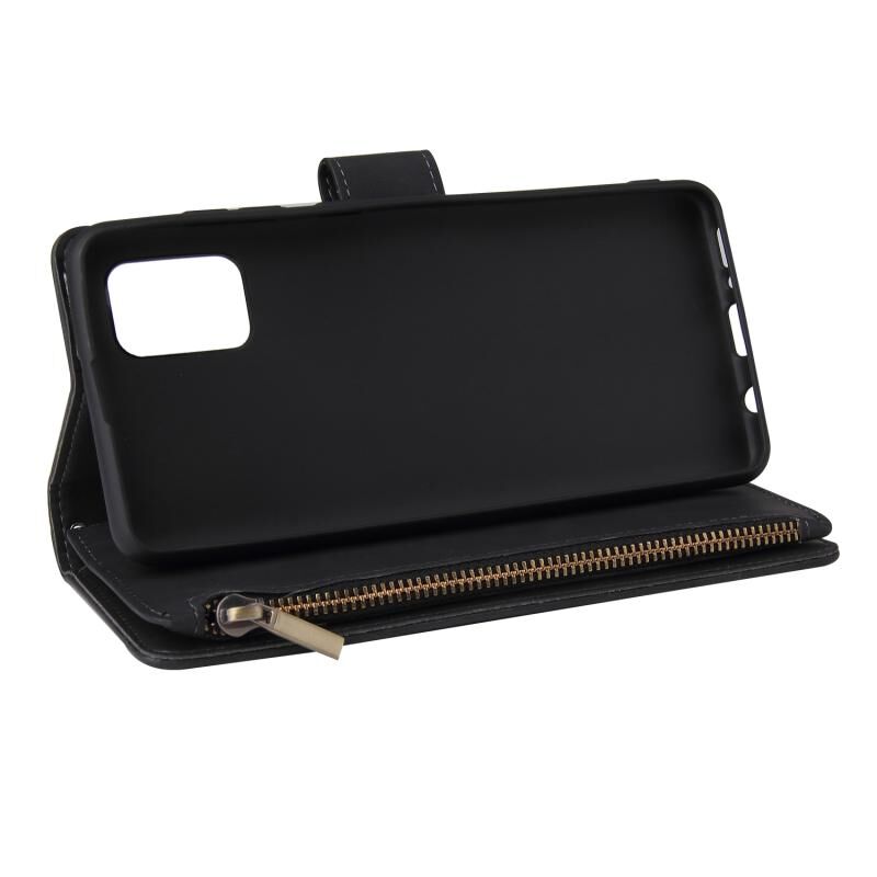 Για Samsung Galaxy A31 Πολυλειτουργικό παγωμένο φερμουάρ πορτοφόλι δερμάτινη θήκη τηλεφώνου (Μαύρο)