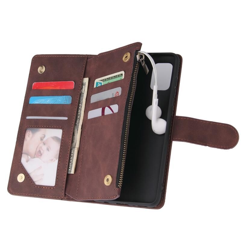 Για Samsung Galaxy A31 Πολυλειτουργικό παγωμένο φερμουάρ πορτοφόλι δερμάτινη θήκη τηλεφώνου (Καφέ)