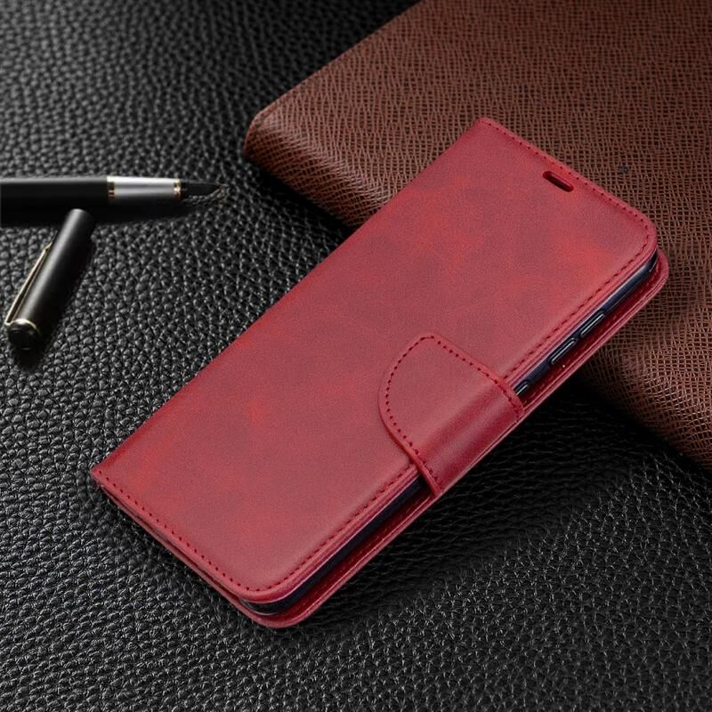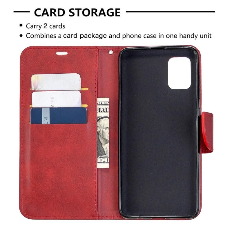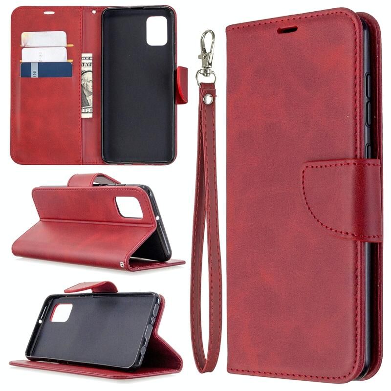 Για Samsung Galaxy A31 Retro Lambskin υφή καθαρό χρώμα οριζόντια Flip PU δέρμα υπόθεση με θήκη & υποδοχές για κάρτες & πορτοφόλι & κορδόνι (κόκκινο)