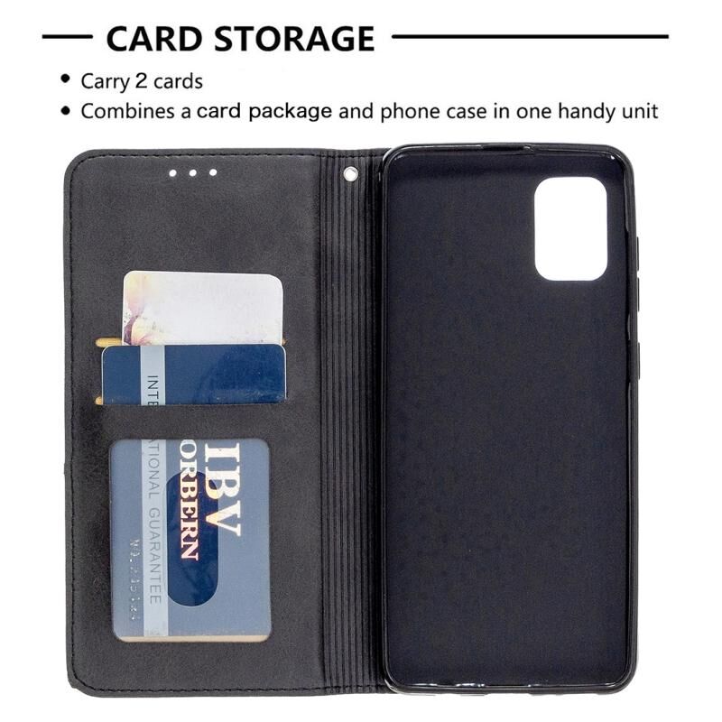 Για Samsung Galaxy A31 Rhombus υφή οριζόντια Flip μαγνητική δερμάτινη θήκη με θήκη & υποδοχές για κάρτες & πορτοφόλι (Μαύρο)