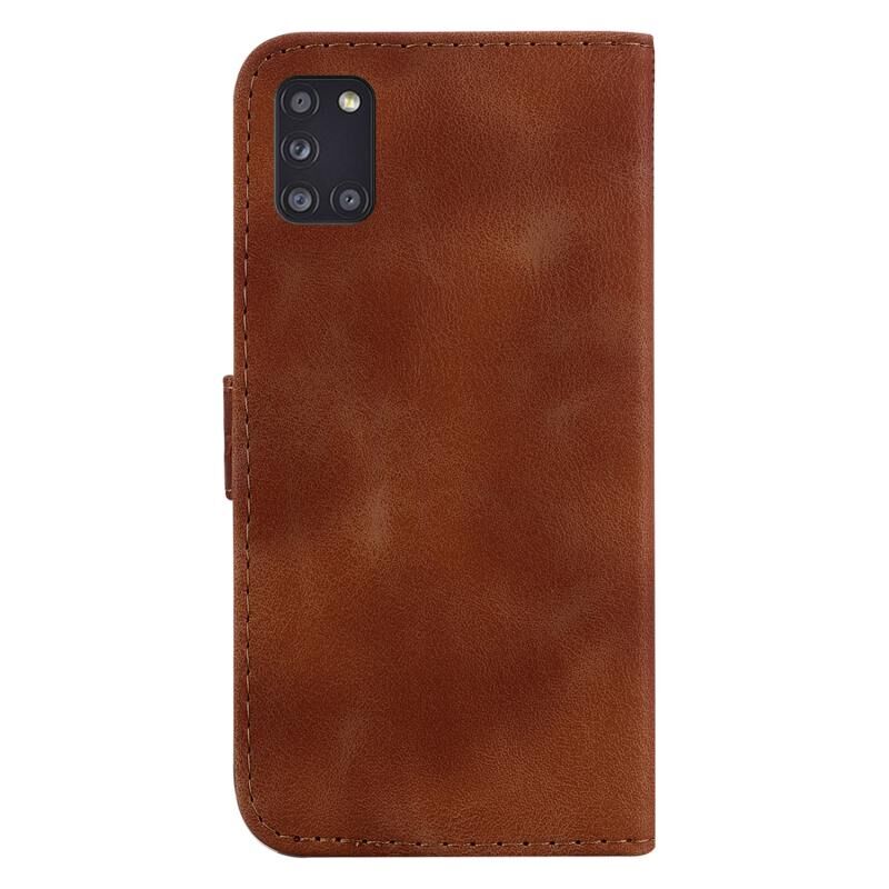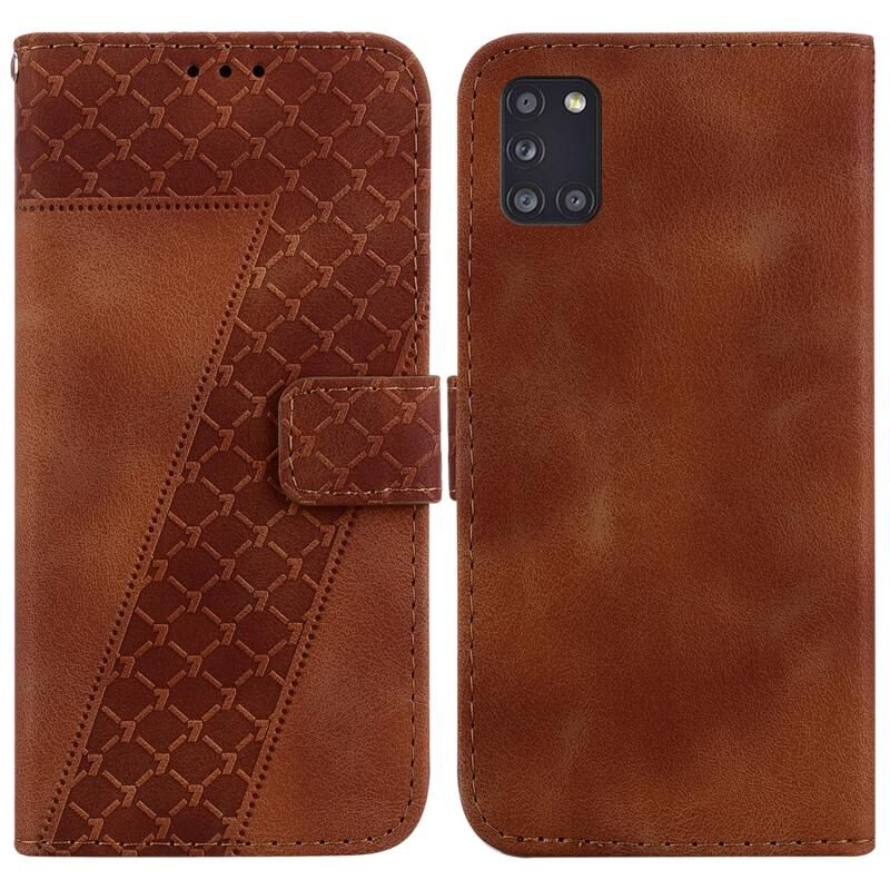 Θήκη τηλεφώνου από ανάγλυφο δέρμα σε σχήμα επτά για Samsung Galaxy A31 (Καφέ)