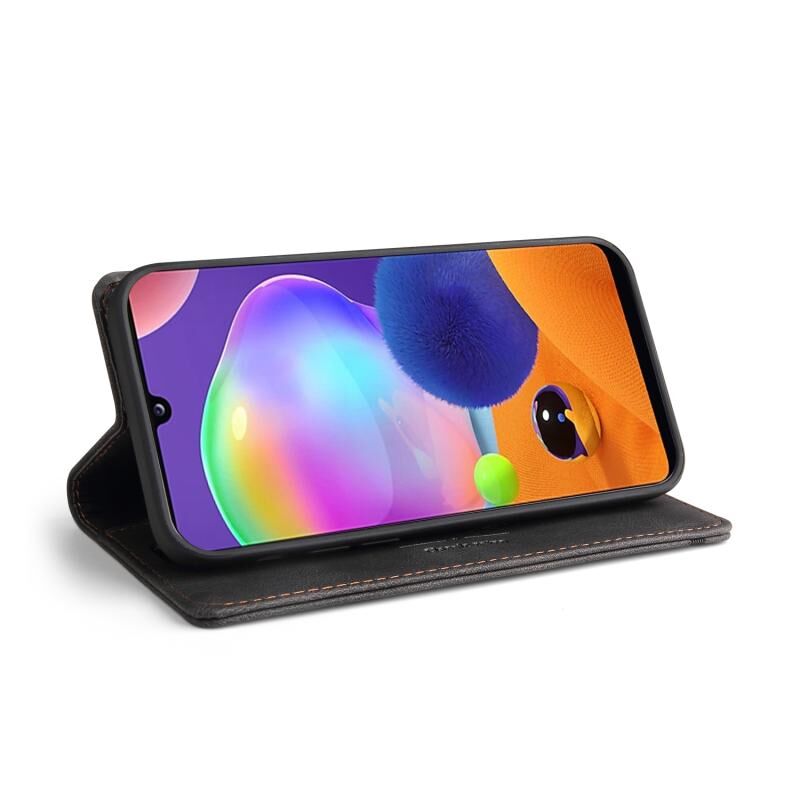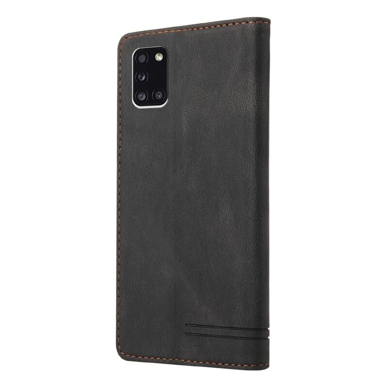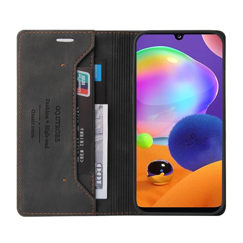 Για το Samsung Galaxy A31 Skin Feel Anti-theft Brush Οριζόντια Flip δερμάτινη θήκη με θήκη & υποδοχές για κάρτες & πορτοφόλι (Μαύρο)