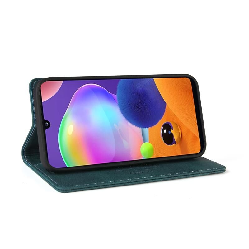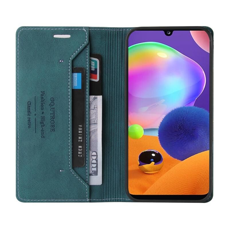 Για το Samsung Galaxy A31 Skin Feel Anti-theft Brush Οριζόντια Flip δερμάτινη θήκη με θήκη & υποδοχές καρτών & πορτοφόλι (Μπλε)