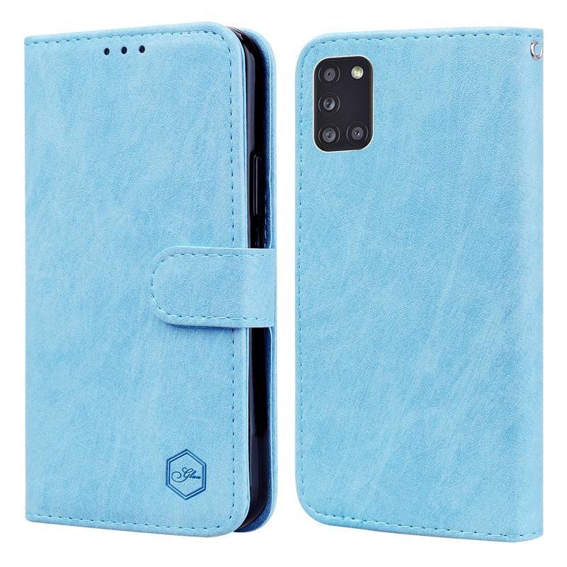 Θήκη κινητού τηλεφώνου Samsung Galaxy A31 με υφή δέρματος λάδι PU + TPU (Ανοιχτό μπλε)