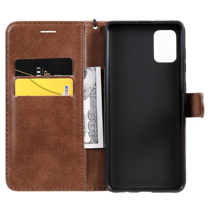 Θήκη Samsung Galaxy A31 Μονόχρωμη Οριζόντια Αναδιπλούμενη Προστατευτική Δερμάτινη με Θήκη & Θήκες Καρτών & Πορτοφόλι & Κορνίζα Φωτογραφιών & Λουρί (Καφέ)