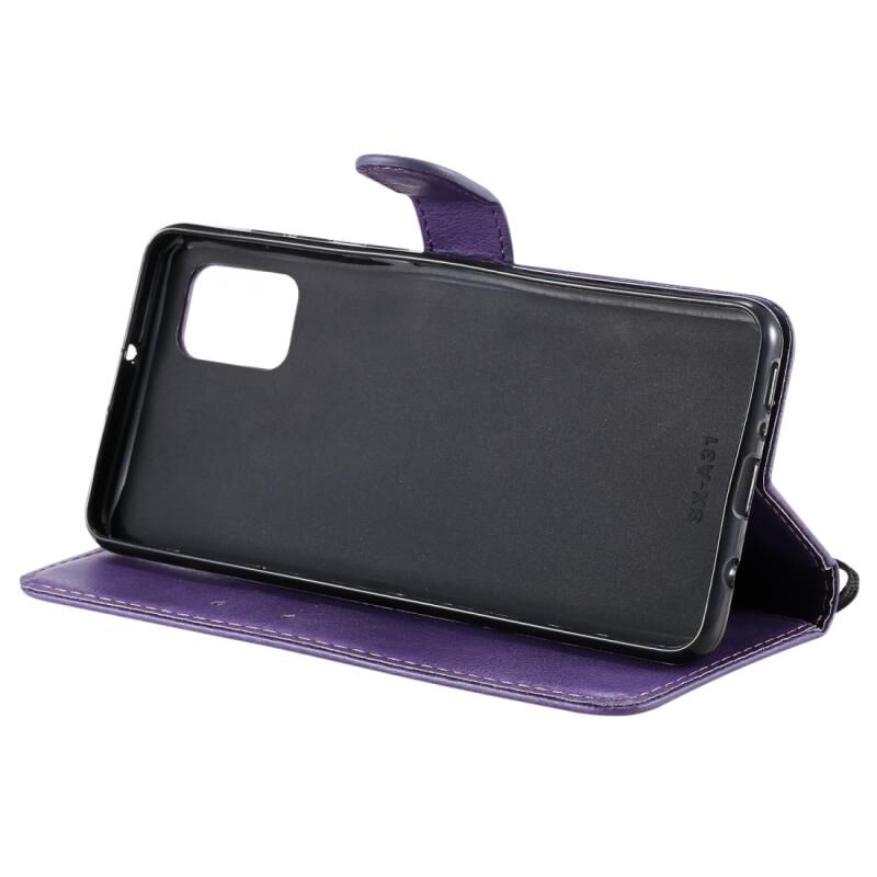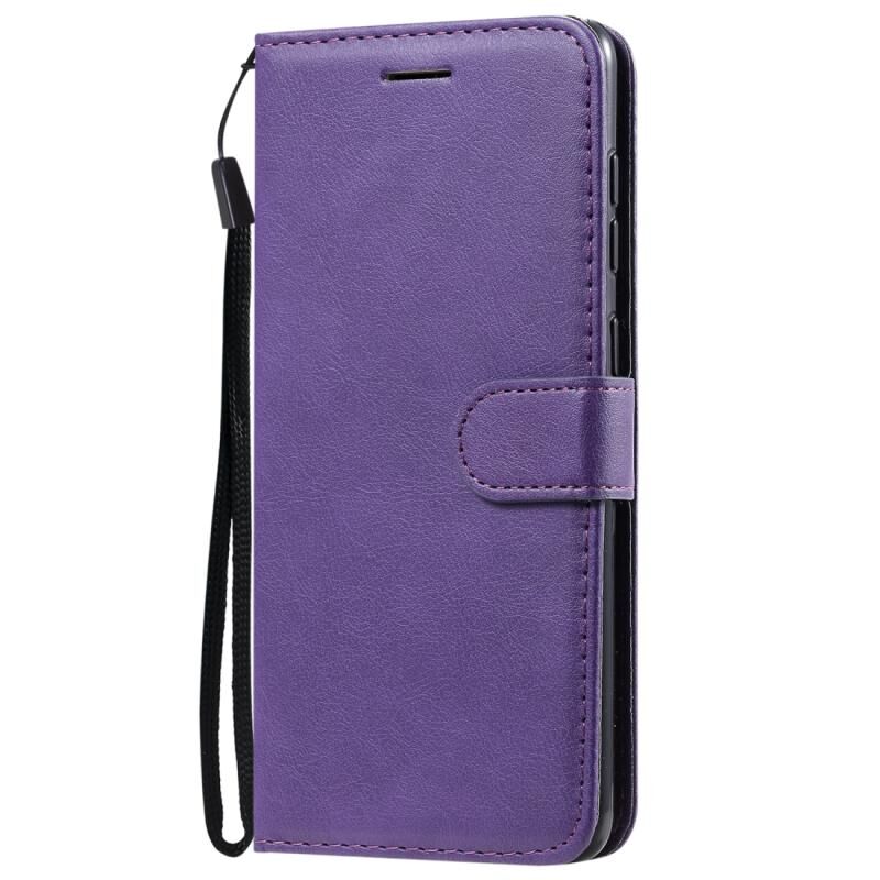 Για Samsung Galaxy A31 Αμιγές χρώμα οριζόντια Flip προστατευτική δερμάτινη θήκη με θήκη & υποδοχές για κάρτες & πορτοφόλι & κορνίζα φωτογραφιών & κορδόνι (μωβ)