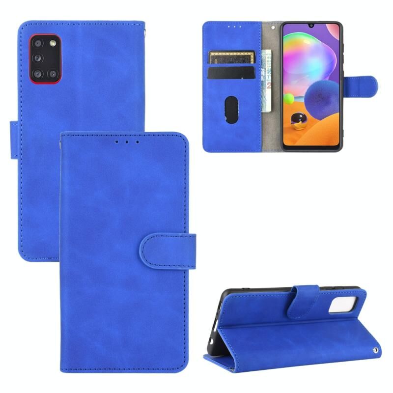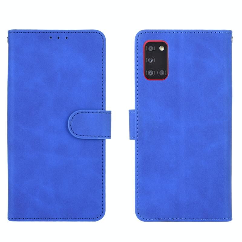 Για Samsung Galaxy A31 Αμιγές χρώμα δέρμα αίσθηση μαγνητική πόρπη οριζόντια Flip μοσχάρι υφή PU δέρμα υπόθεση με κάτοχο & υποδοχές για κάρτες & πορτοφόλι (μπλε)