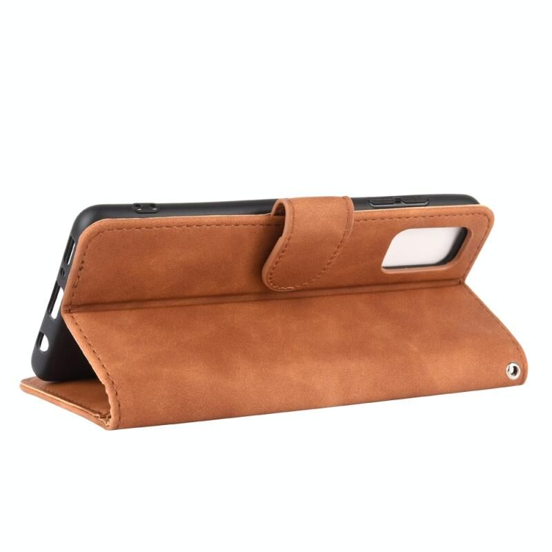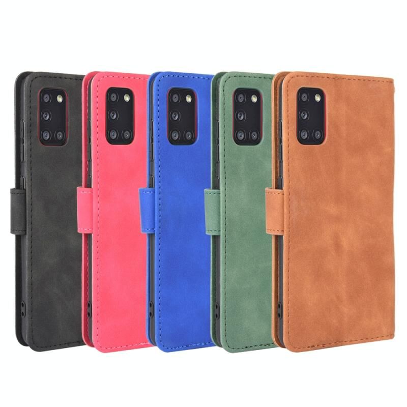 Για Samsung Galaxy A31 Αμιγές χρώμα δέρμα αίσθηση μαγνητική πόρπη οριζόντια Flip μοσχάρι υφή PU δέρμα υπόθεση με κάτοχο & υποδοχές για κάρτες & πορτοφόλι (καφέ)
