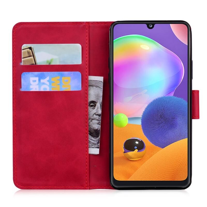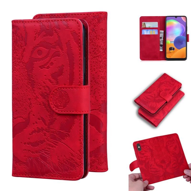Θήκη Samsung Galaxy A31 από Δέρμα με Οριζόντιο Άνοιγμα, ανάγλυφο σχέδιο τίγρης, με Θήκη & Θήκες Καρτών & Πορτοφόλι (Καφέ)